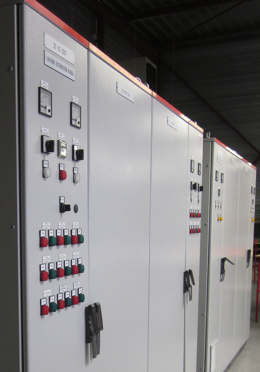Nous y assemblons les armoires électriques, coffrets, pupitres de commandes et autres équipements électriques.